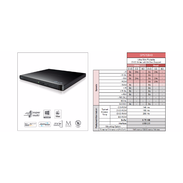 LG USB 2.0 Slim External Super-Multi DVD Writer Black