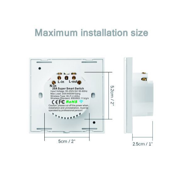 20A High Power Super Wi-Fi Switch. No Hub Required, work With Alexa Echo and Google Home.