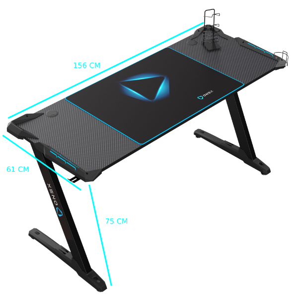 ONEX GD1600Z Adjustable Ergonomic Gaming Desk Black with RGB Lighting