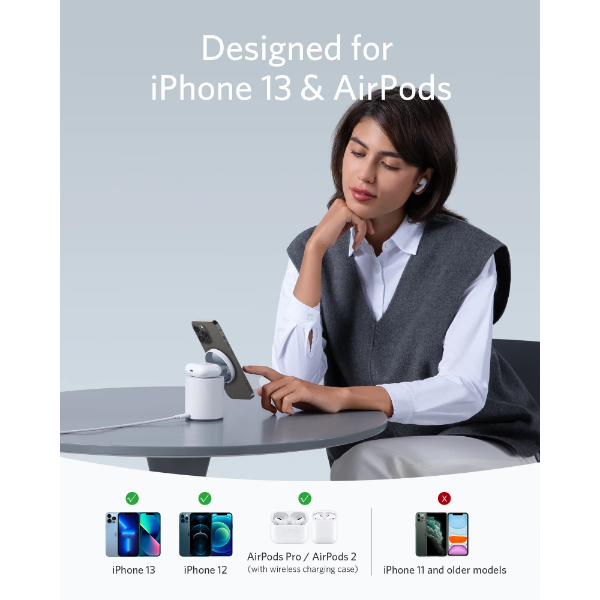 Anker 2-in-1 Magnetic Wireless Charging Station White (includes Power Supply)