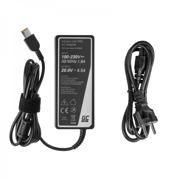 Green Cell Pro 90W Lenovo Laptop Power Supply (Rectangular Yellow Slim Tip)