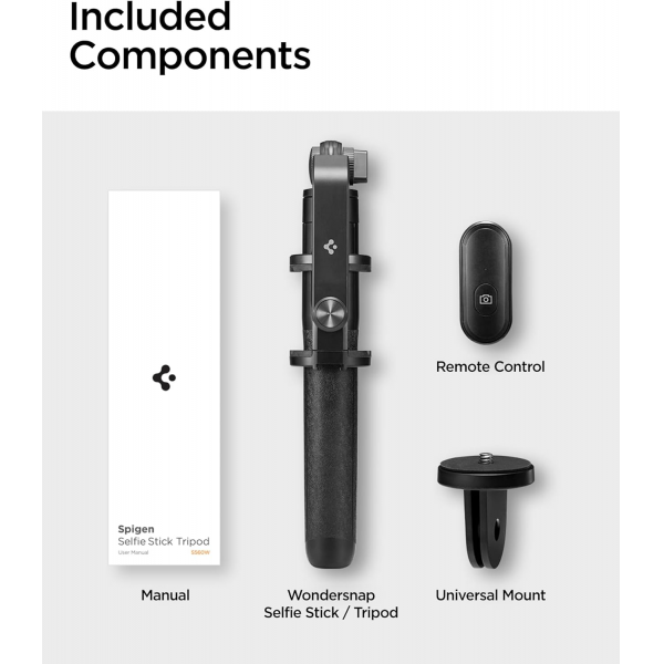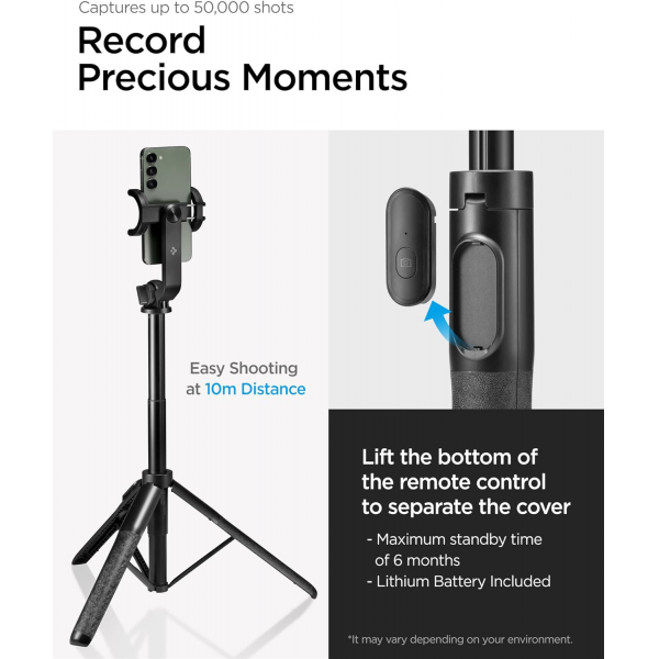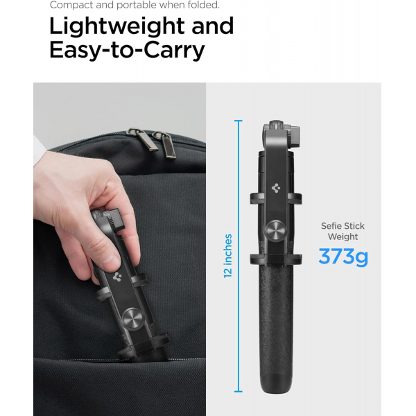 Spigen S560W Smartphone and Camera Black Selfie Stick and Tripod with Bluetooth Remote Control