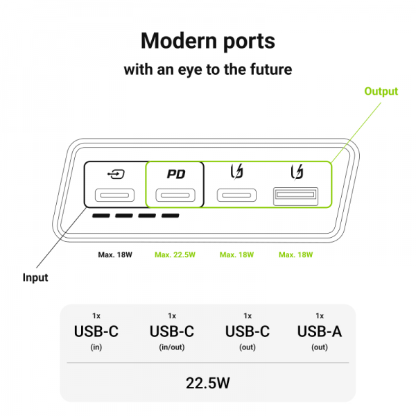 Green Cell PowerPlay 20S 20,000mAh 22.5W PD USB-C Power bank Black