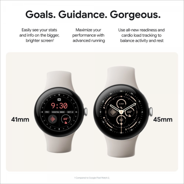 Google Pixel Watch 3 41mm Bluetooth & Wi-Fi Smartwatch Silver with Porcelain (Beige) Active Band