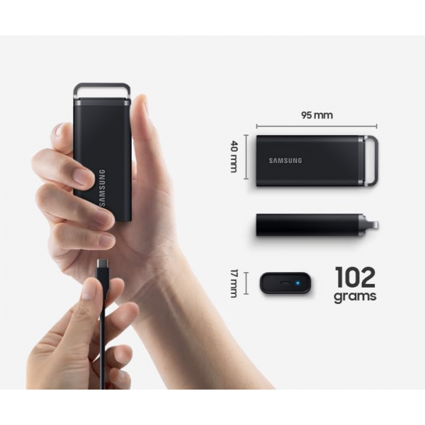With storage capacities of up to 8 TB, the T5 EVO is suitable for a wide range of applications. Whether you're working, creating, studying, gaming, or backing up, the Portable SSD has the right size for your needs.