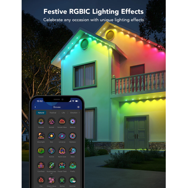 Govee Wi-Fi & Bluetooth Smart LED RGBIC (Multicolour) Permanent Outdoor Lights 30m